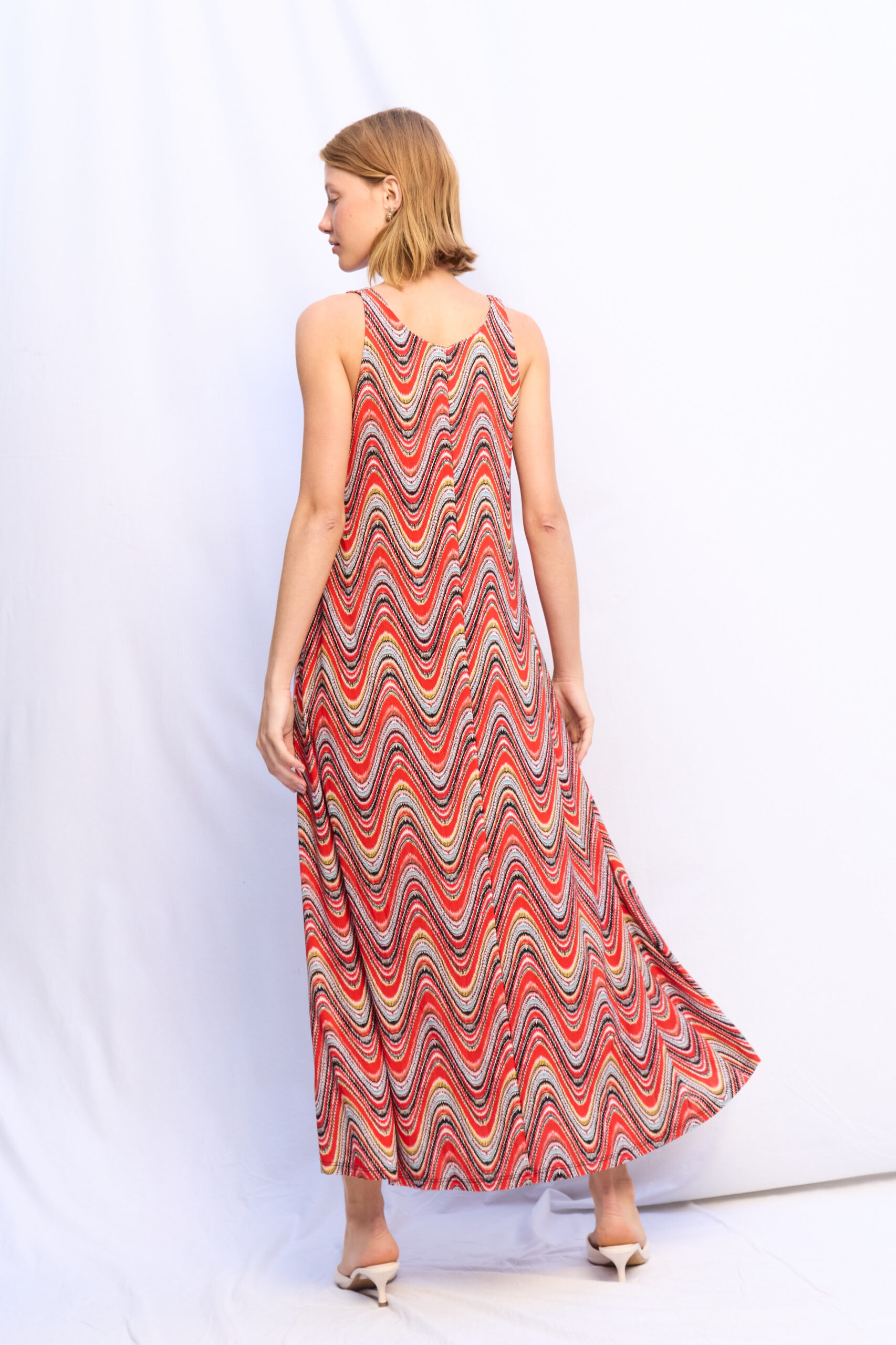 VESTIDO OLIVIA LYCRA NARANJA MULTICOLOR RETRO