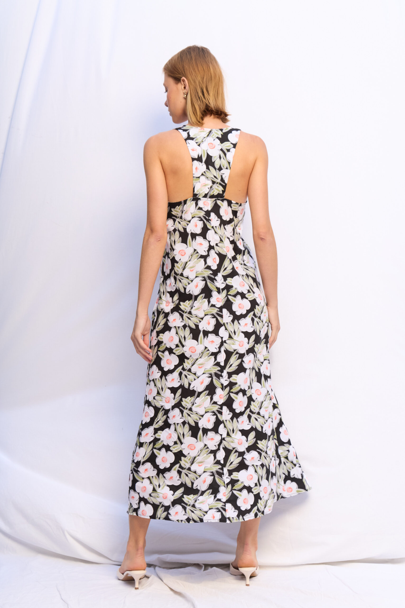 VESTIDO AMANDA ACERO HOJAS CREMAS
