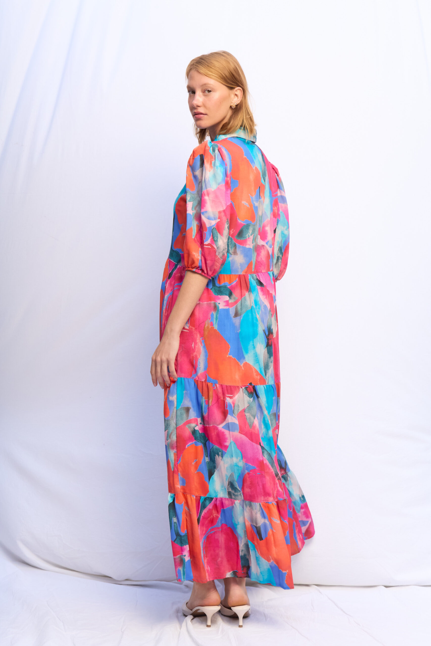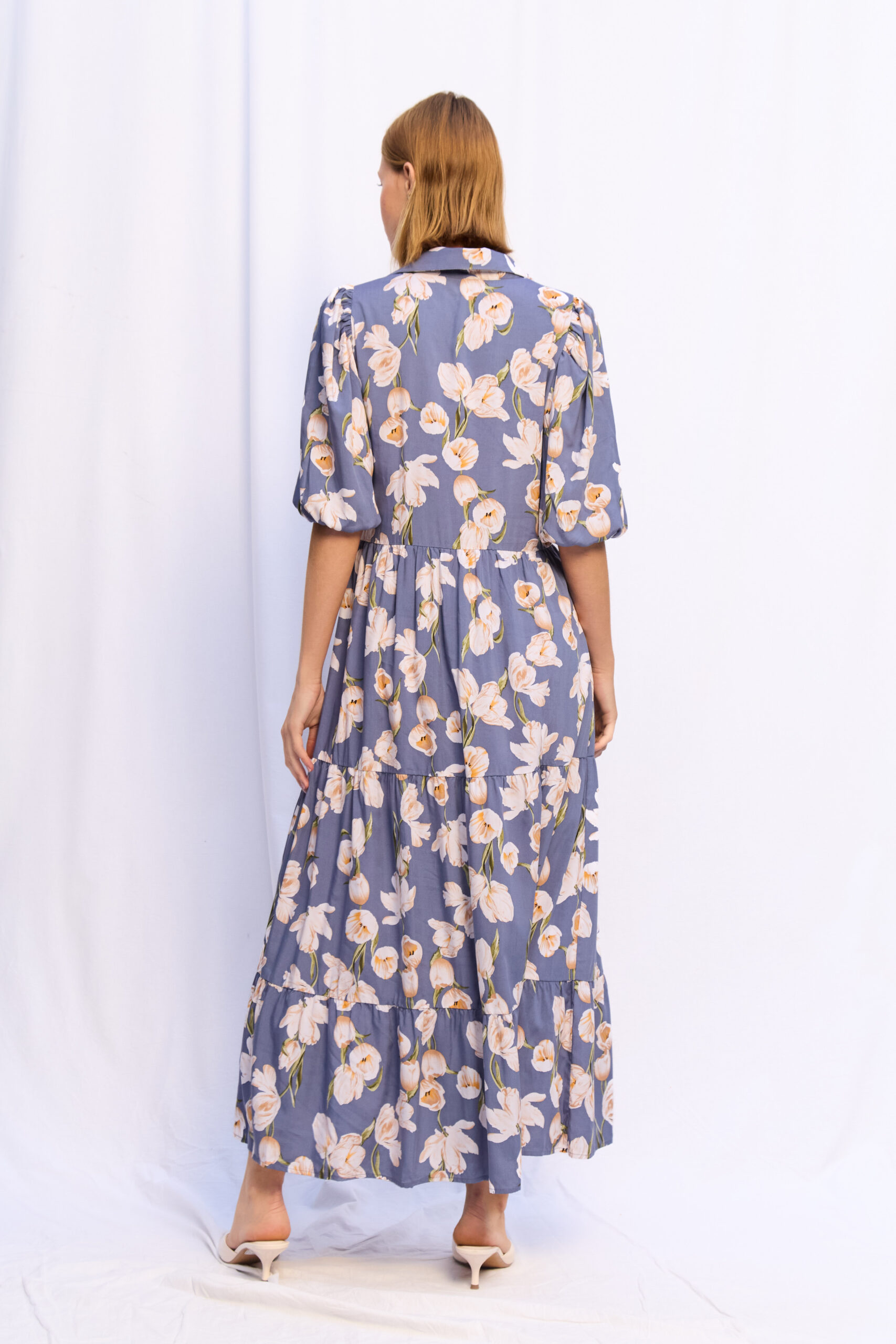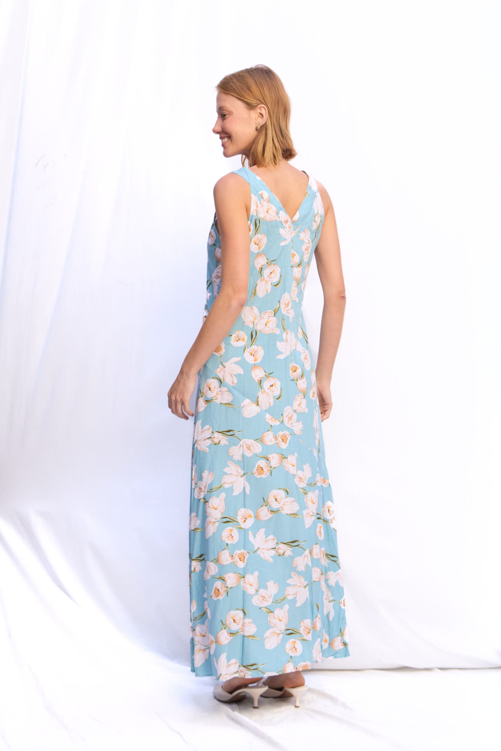 VESTIDO BRUNA CELESTE CIELO ROSAS CREMA