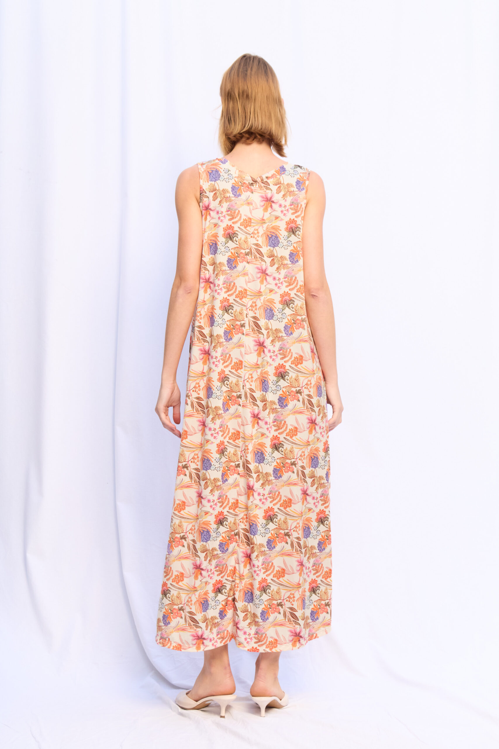 VESTIDO CORINA LYCRA ECRU FLORES TROPICAL