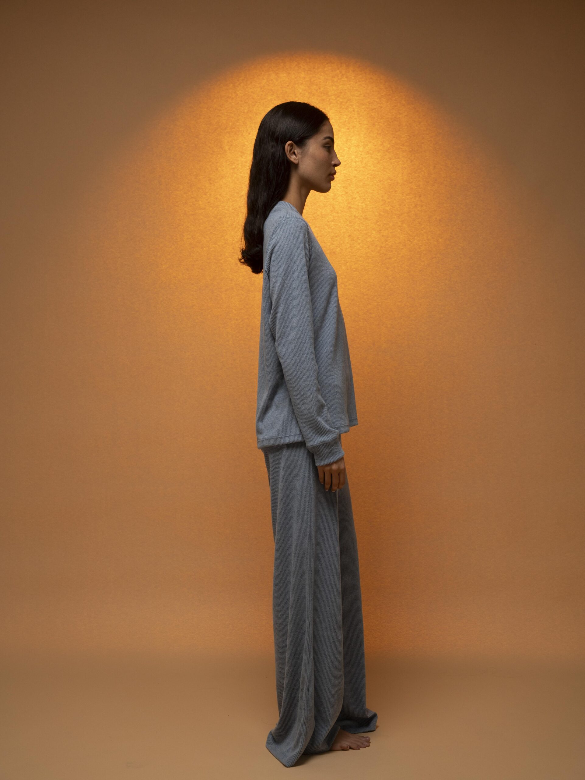 Celeste delicado con fit fluido y pantalón acampanado, extramadamente cómodo. Dos bolsillos traseros y ligereza total, ideal para momentos relajados con estilo.