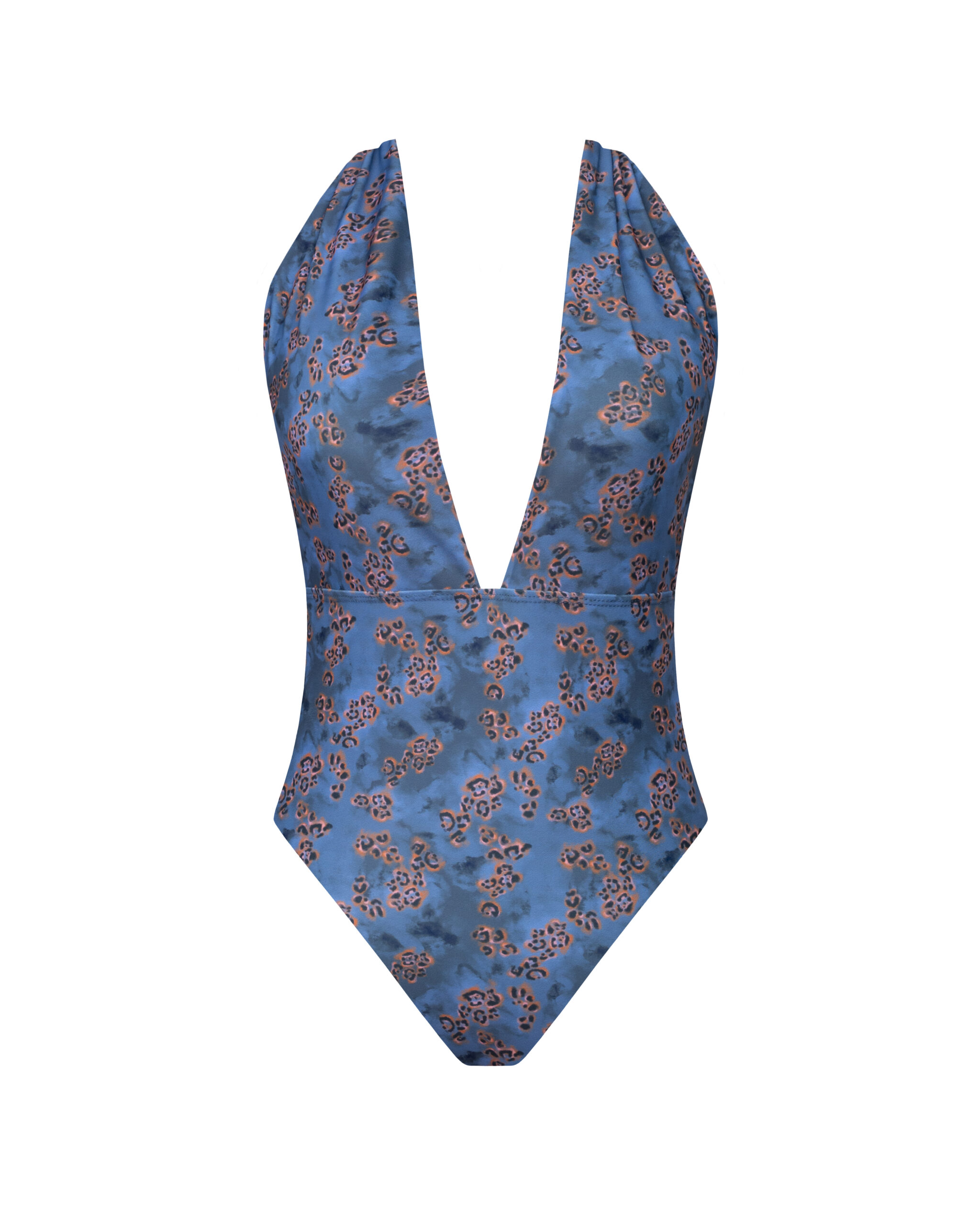 ROPA DE BAÑO CARMEN AZUL ANIMAL PRINT